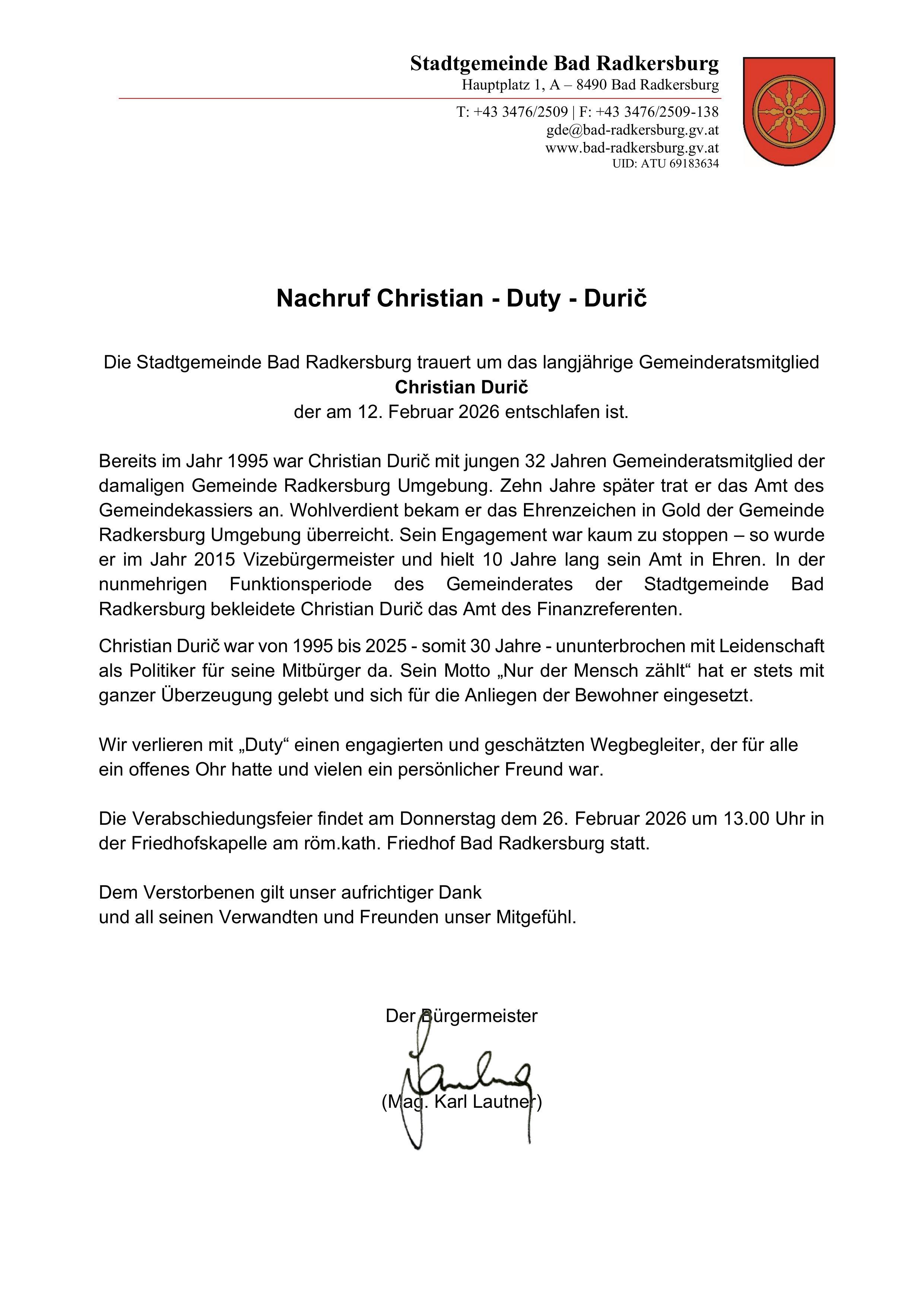 Nachruf_Christian Durič