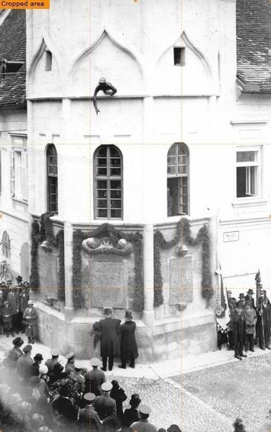 Plošče so del spomenika, ki se nahaja na mestnem pokopališču. Spomenik obeležuje padle v prvi svetovni vojni in v brambovskem boju pri Radgoni 4. februarja 1919, javnosti pa je bil odkrit 2. novembra 1929. Besedilo odraža takrat prevladujočo kulturo spomina. Beseda "Führer" se nanaša na župana avstrijske Radgone, dr. Franza Kamnikerja (1870–1928), ki je kot član avstrijske mirovne delegacije leta 1919 zastopal okupirano Spodnjo Štajersko na mirovnih pogajanjih v Saint-Germainu. Plošče ne namigujejo na nobeno povezavo z nacizmom.